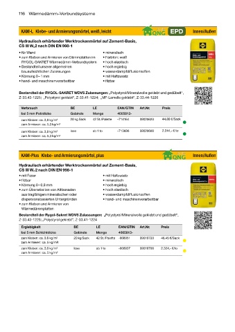 KAM-L Klebe- und Armierungsmörtel, weiß, leicht EPD Innen/Außen