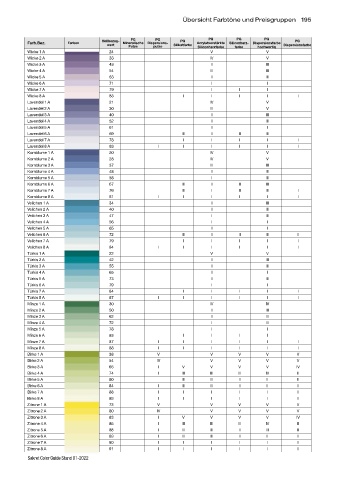 Übersicht Farbtöne und Preisgruppen 195