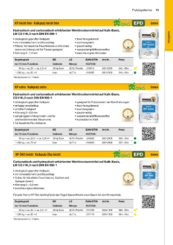 KP leicht fein Kalkputz leicht fein EPD Innen
