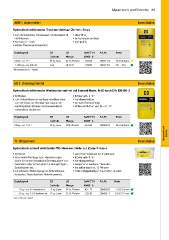 5 kg = ca. 3 l Frischmörtel 5 kg Eimer 45 St./Palette -404171 08058205 12,55 €/Eimer *